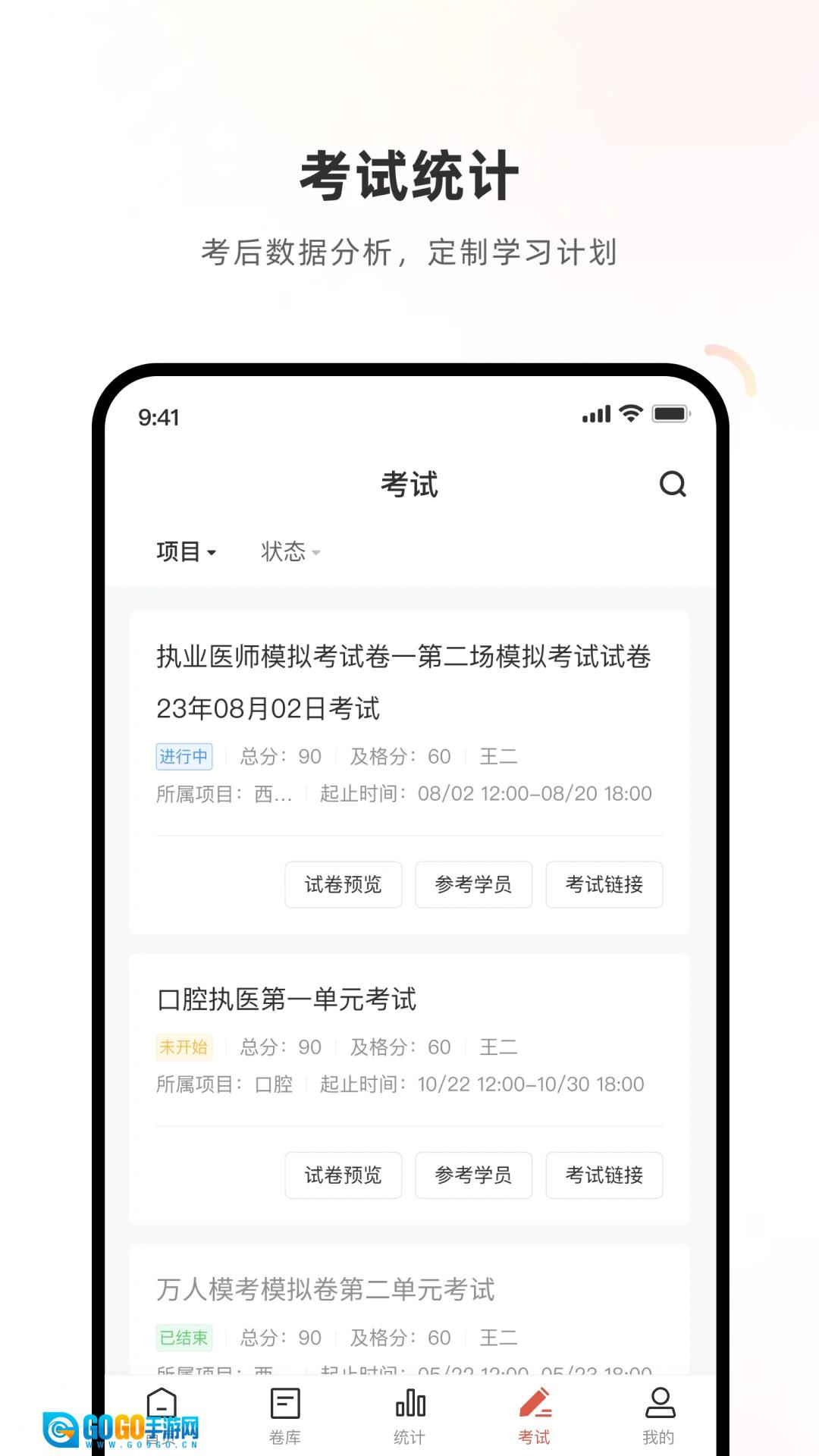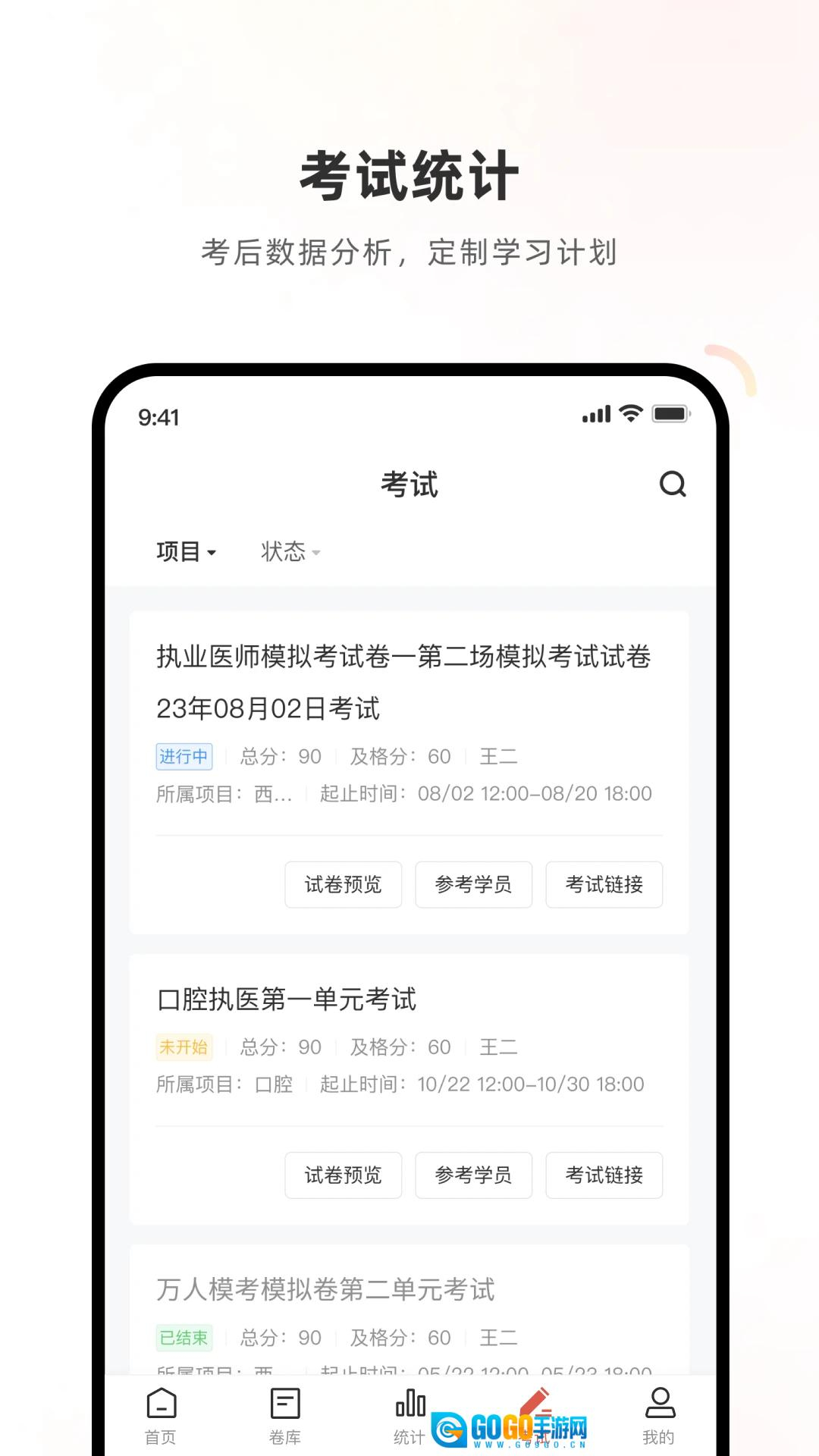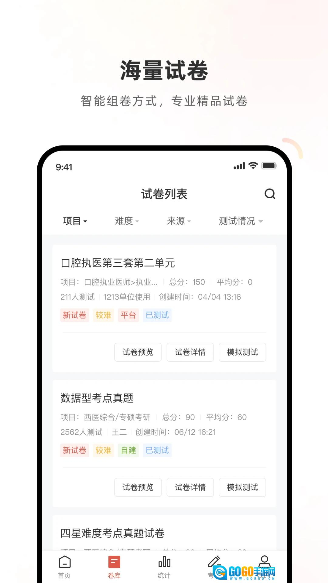 医学考试系统作为当下备受欢迎的医学备考工具,搭载了实时更新的全新题库资源,用户可随时自由浏览学习,轻松夯实各类医学知识基础。它不仅能助力用户顺利参与线上医学考试,还能营造优质的学习氛围,让学习过程充满乐趣;同时支持高效的考后数据分析,方便用户随时随地掌握详细的考试成绩,全方位满足不同的学习需求。此外,用户还能自由利用题库进行针对性练习,快速吃透考试相关知识点,有效提升专业能力。有需要的用户,欢迎前往本站下载体验!
