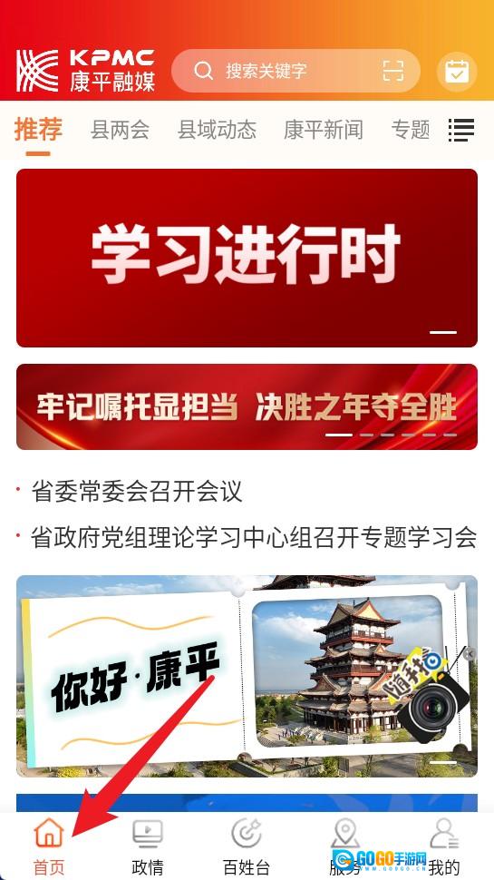 1、点击底部首页图标可返回主页面,查看推荐资讯和最新政务新闻内容。