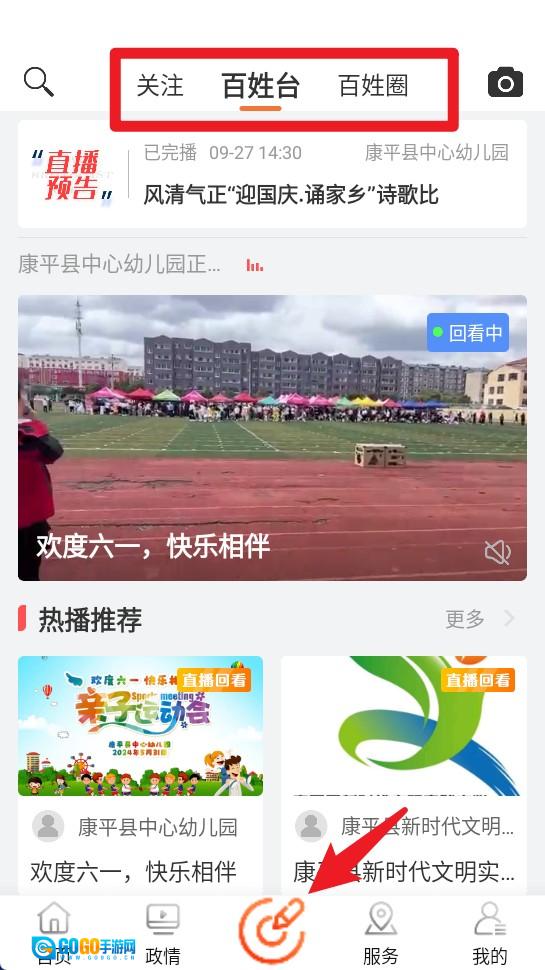 3、点击百姓台可浏览本地视频内容,包括直播回看、社区活动等,支持多标签切换。