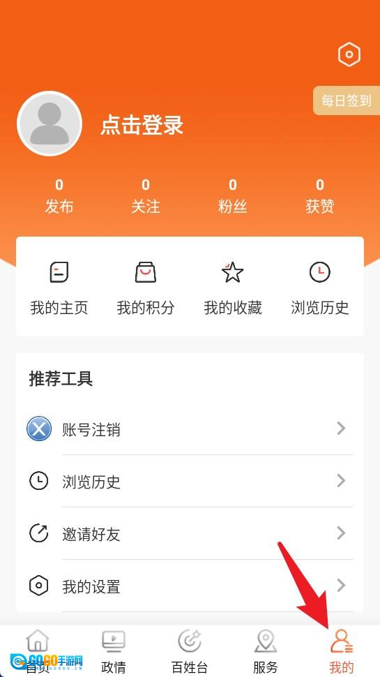 5、点击我的按钮可登录账号,查看个人积分、收藏、历史记录和账号设置等内容。