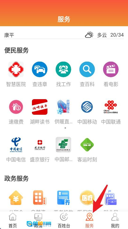 4、进入服务模块可查看便民服务如查违章、看电影、缴费等,支持在线办理操作。