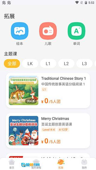 6、点击拓展选项,这里包含绘本、儿歌等各类课外活动。