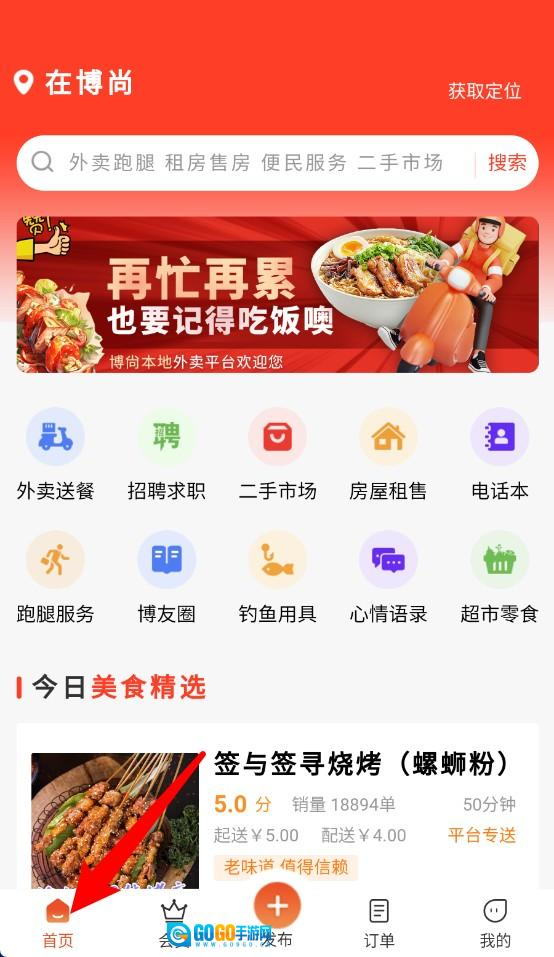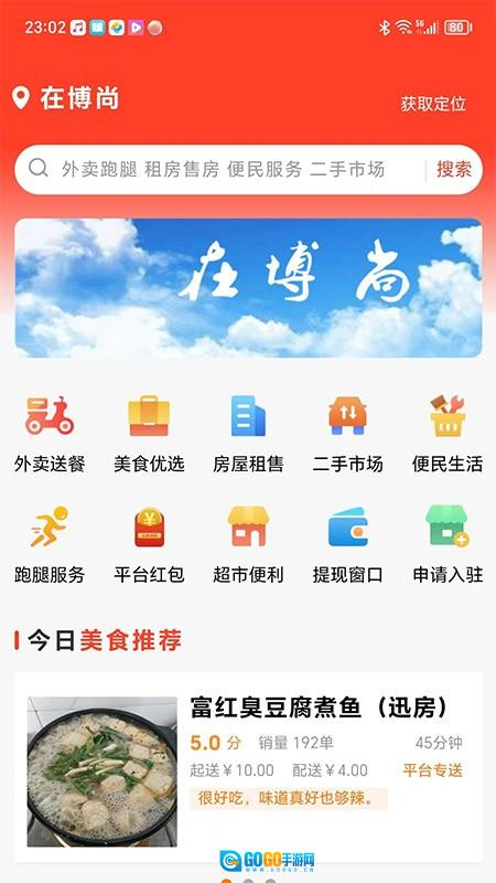 2、登录后进入首页,能搜索外卖跑腿、房屋信息等各类服务,操作简单清晰明了。