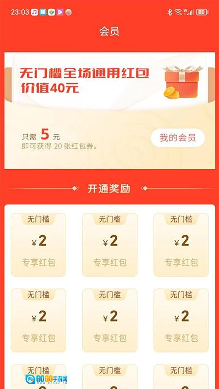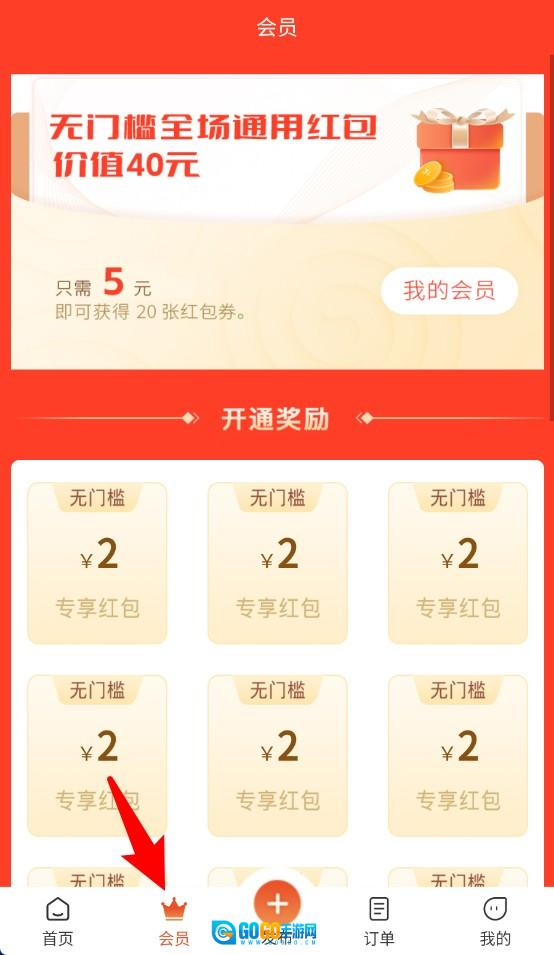 3、点击底部的会员栏目,就能查看并领取无门槛红包,还能享受会员专属的优惠福利。