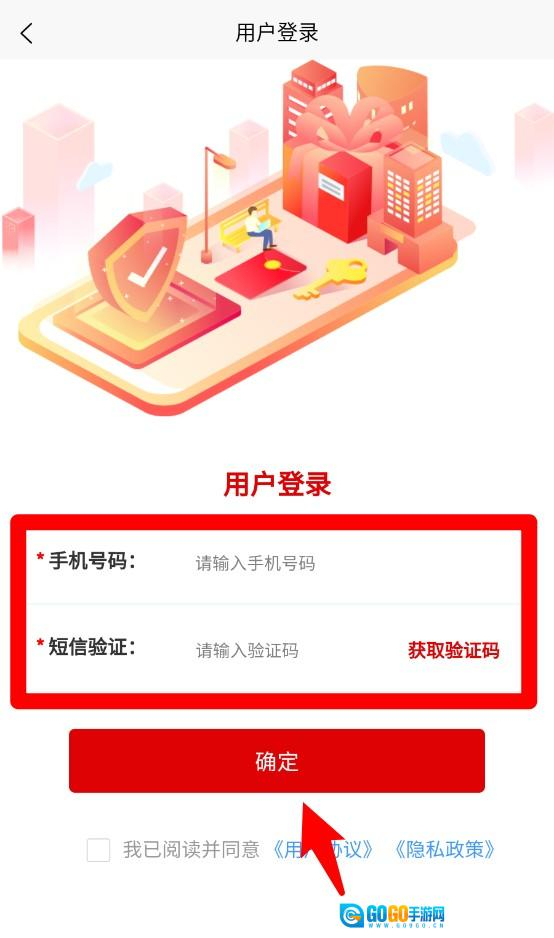 1进入登录界面后,先输入手机号码,接着获取并填写验证码,最后点击确定按钮,即可完成登录操作。