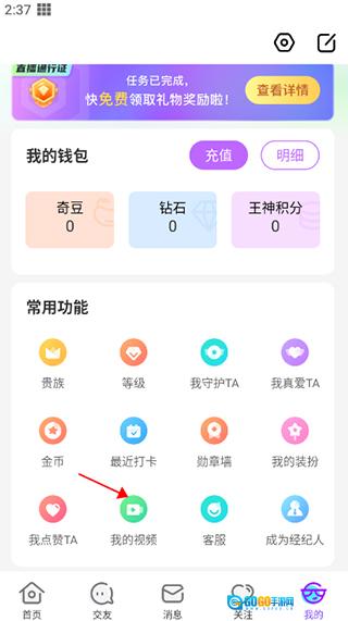 1、打开好的奇秀直播,进入首页,点击【我的】。