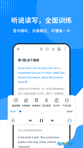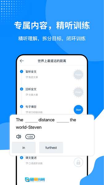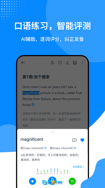 1、智能推荐:根据用户的水平和学习进度,智能推送合适的听力材料。