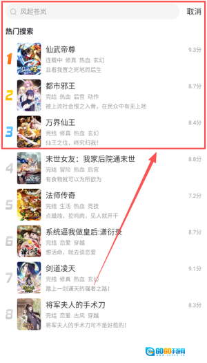 3、然后,利用搜索功能,输入关键词轻松查找特定漫画或作者,节省时间,提高查找效率。