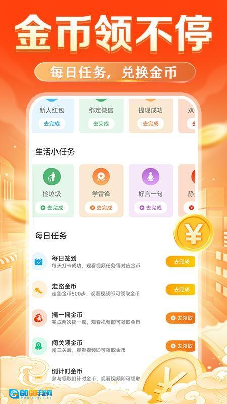3、任务种类丰富多样,涵盖日常活动、小游戏及分享互动等,满足不同用户偏好,轻松积累金币。