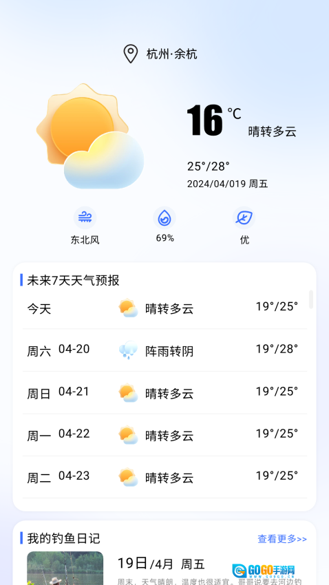 支持用户对相关的钓鱼天气来实时查看,轻松查看相关的天气,随心掌握未来的天气预报。