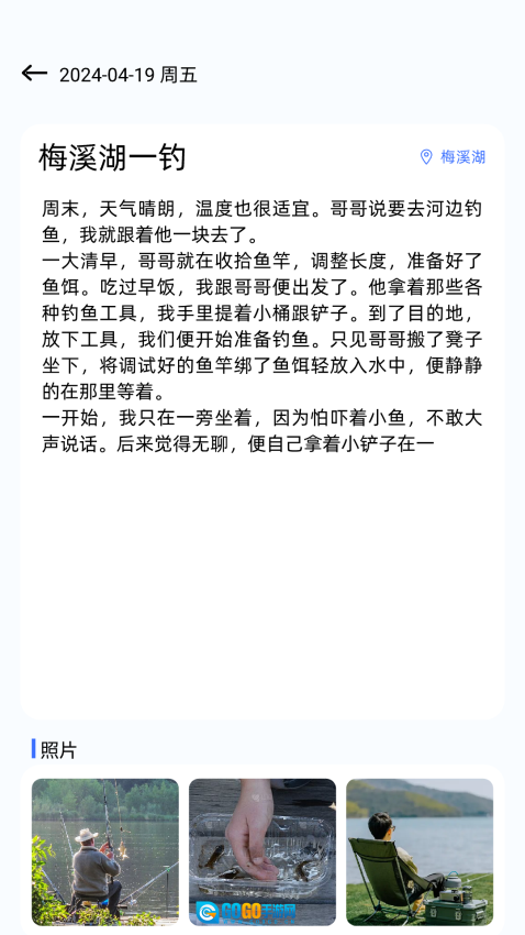 就可以对相关的钓鱼日记进行查看,轻松记录自己的钓鱼日记,实时记录自己的灵感。