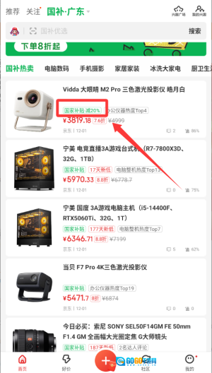 4、看到任意一个商品会显示绿色的提示国家补贴百分之20。