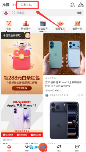 3、选择左上角的国家补贴分类。