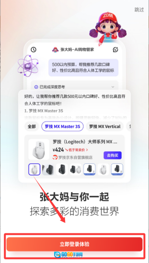 2、选择底部立即登录体验按。