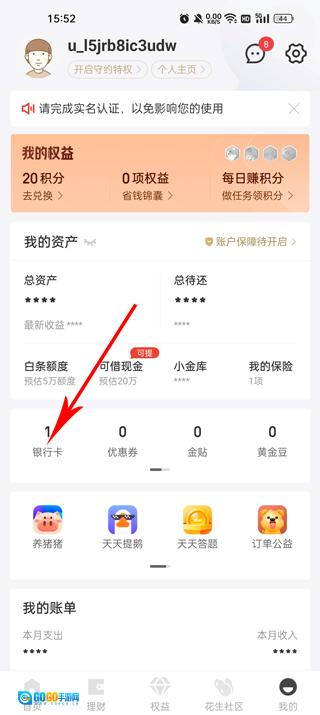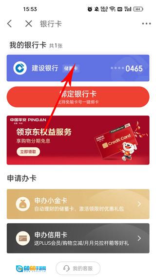 2、依旧点击下方的银行卡,进入银行卡界面。
