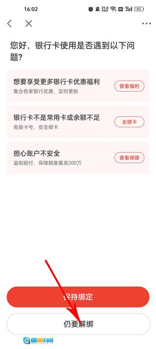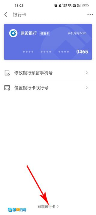 4、接着点击下方的“我要解绑银行卡”选项,进入解绑操作页面。