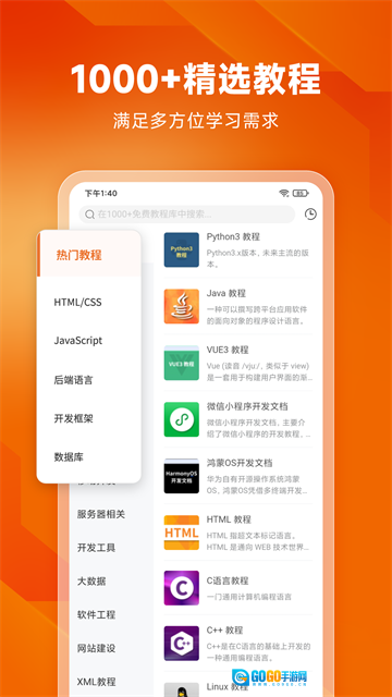 编程狮是一款面向编程初学者与进阶开发者打造的学习软件,拥有HTML、CSS、JavaScript、Python、Java、PHP、C/C++等上千套教程和在线练习功能,是当下备受欢迎的零基础编程学习工具之一。用户能在App里随时查看常用开发文档、面试题、项目实战案例,还可在线编写代码并即时运行,轻松跨越传统学习的障碍。此外,它还设置了清晰的学习路径,从入门基础语法到实战项目,循序渐进地引导新手建立开发思维。