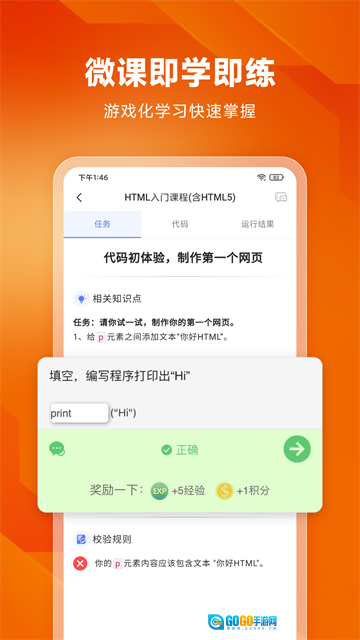 1、学练同步进行:每门课程都了在线代码编辑器,无需配置环境,您就能直接编写并运行代码。