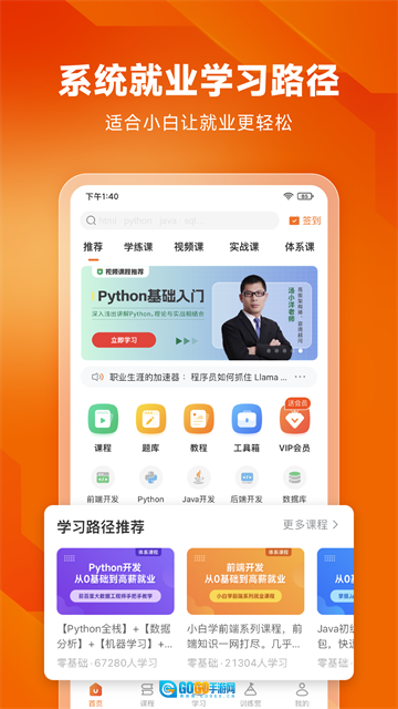 1、系统课程:从零基础起步,逐步深入至高级算法与框架应用层面,助力学员搭建起完整的知识路径体系。 2、多语言支持:覆盖20余种主流编程语言及技术栈,可满足前端开发、后端开发、数据科学等不同领域的学习与实践需求。