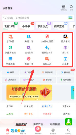 1、启动项目创作:进入应用后,根据目标选择海报设计、视频剪辑或拼图等不同创作模式,开启新项目。