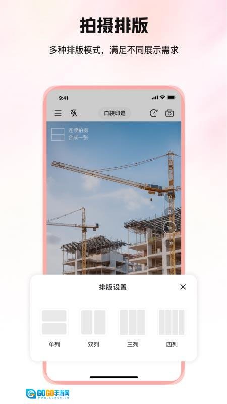 1、拍照拼图功能允许用户在拍摄时实时挑选多格布局,拍摄结束后系统会自动生成拼图作品,让拍摄与创作能够同步完成。