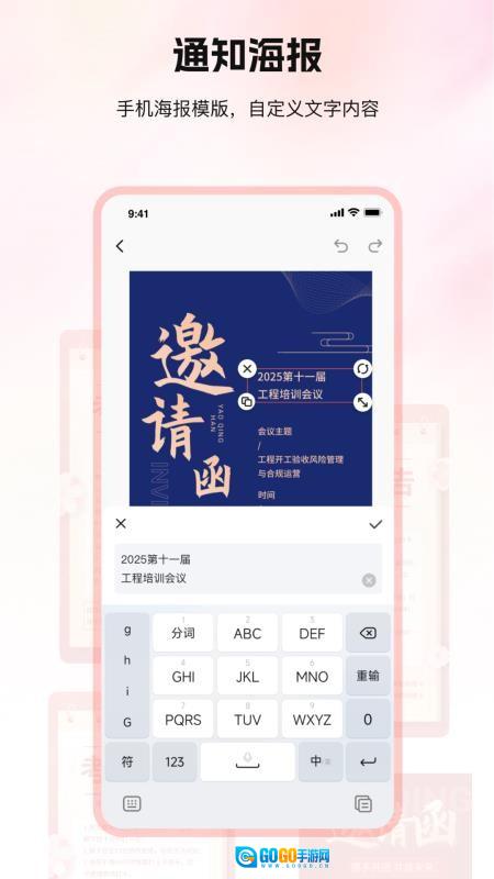 4、编辑工具支持对模板内的文字与图案进行个性化调整,具体可实现字体更换、颜色修改以及图层顺序的自由编排等操作。