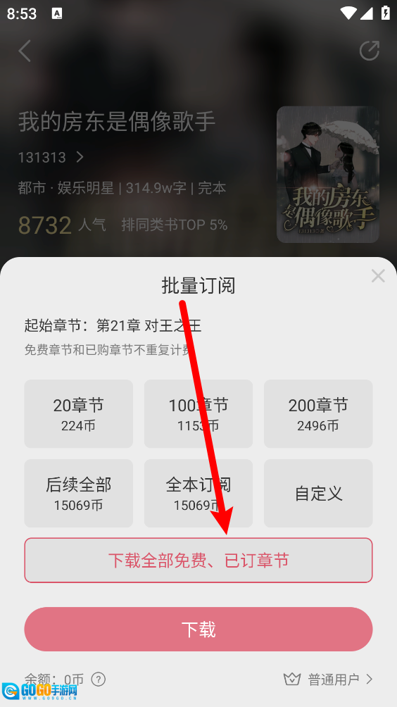 4、最后选择对应的章节,点击相应按钮即可,完成后就能进行离线阅读了