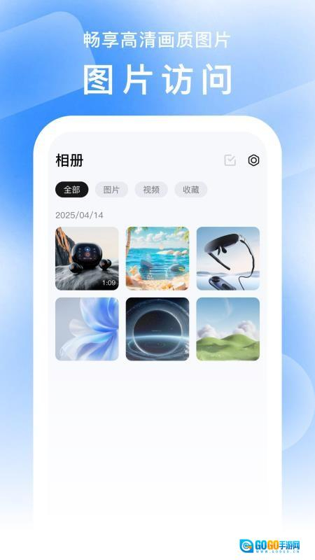 3、媒体内容管理:打开相册模块,查看眼镜拍摄的照片和视频,能把精选的素材导出到手机里,也可以清理掉不需要的文件。