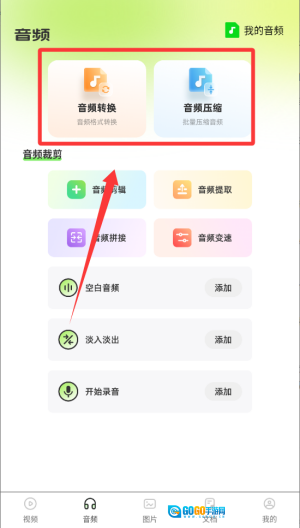 2、再到音频功能分两大类音频转换还有音频压缩。