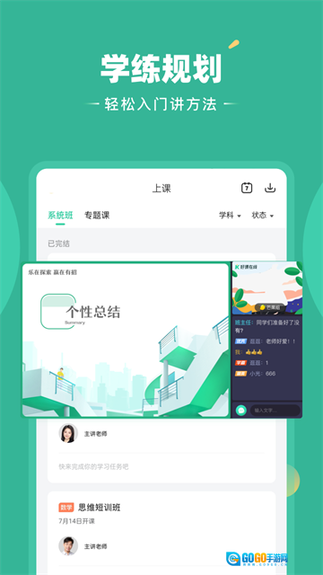 2、双师辅导模式:由主讲师负责授课环节,导师则专注于解答学员的问题。该模式形成了一个完整的学习闭环,涵盖课前预习、课堂互动以及课后巩固三个关键阶段。
