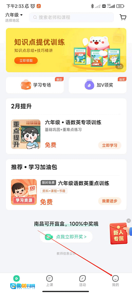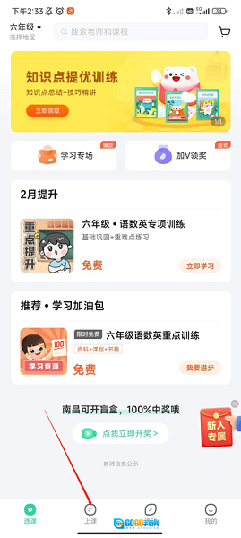 1、单击底部上课。