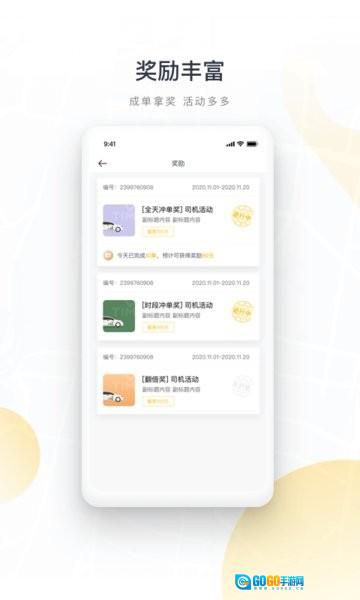 3、丰富奖励活动助力:平台会定期上线各类激励任务,司机完成相应目标就能拿到额外奖励,帮助司机提升收入。
