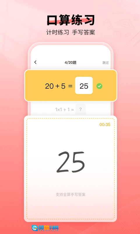 3、口算练习中可以手写答案。