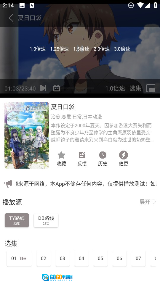 2、接着任意选择一部喜欢的动漫播放,点击播放界面,找到【1.0倍速】。