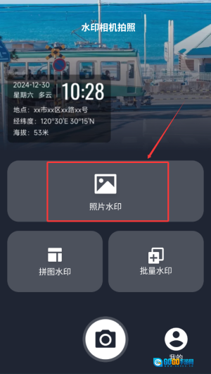 1、打开水印相机并选择合适的场景模板,拍摄前可预览水印的具体位置及内容呈现形式,确认无误后拍摄,即可得到带有认证信息的现场实景照片。