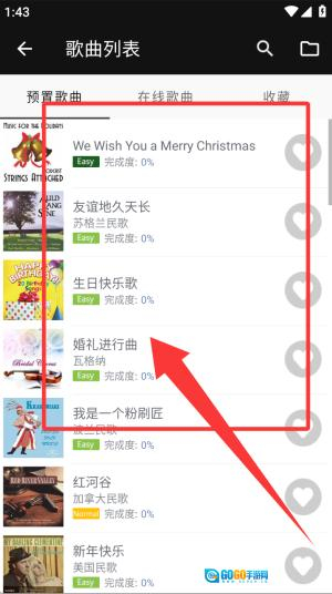 2、整合了海量热门歌曲曲库且会持续更新,还提供多种引导模式,助力用户由浅入深地掌握乐曲。