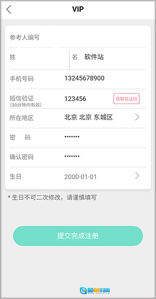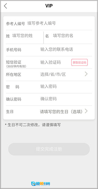 4、完成上述操作后,系统会跳转至【vip资料填写】页面,该页面中除生日信息外,其余所有信息均为必填项。