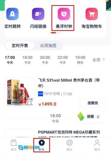 1、打开软件后点击秒杀中的悬浮时钟。