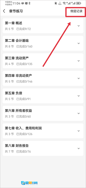3、接着在章节练习目录界面中点击右上角做题记录。