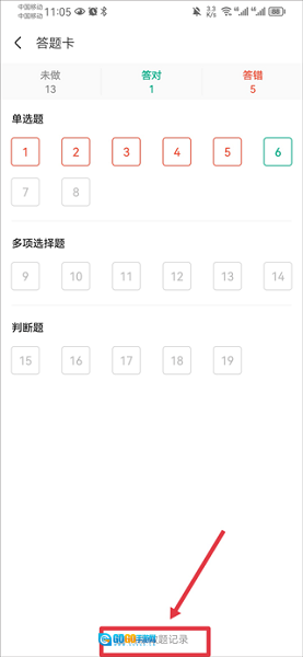 5、若需删除小节内的做题记录,可在练习题页面点击答题卡进行操作。