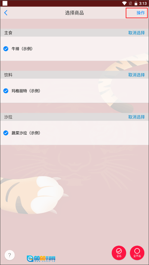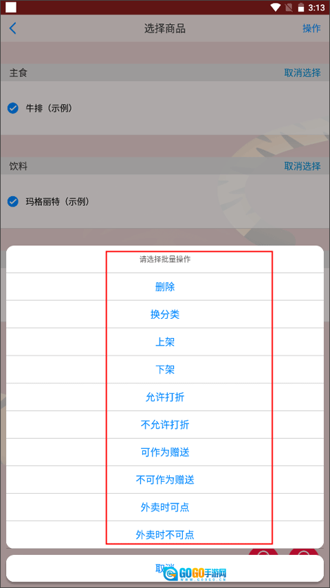 2、点击批量按钮,可一次性选中多个商品。选中后点击右上角的操作功能按钮。