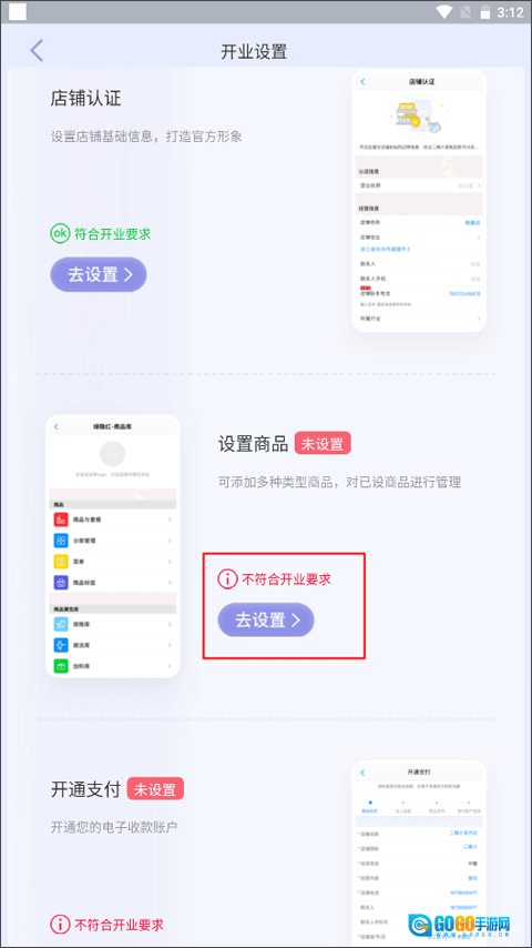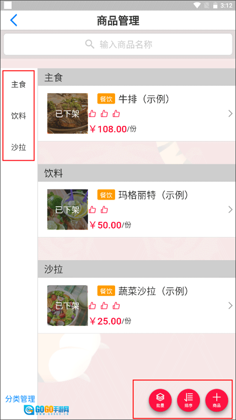 1、在主界面点击右上角开业设置,在基本功能中选择商品设置,页面中会显示分类好的食物和饮品。