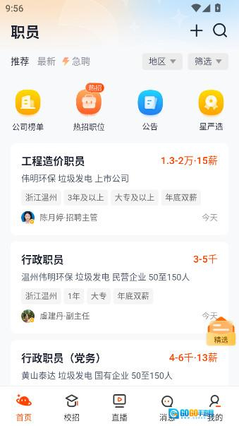 双向智能匹配与推荐:不仅可主动搜索职位,平台还会根据简历内容,由企业主动发出职位邀请。同时,基于用户信息和求职意向,智能推荐匹配的岗位与企业。
