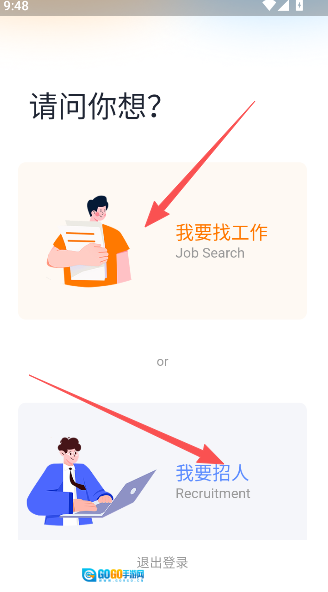2、确认你的用户身份,是求职者还是招聘者。