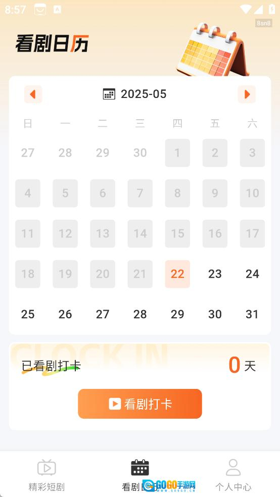 在看剧日历页面能够完成看剧打卡操作,这样你就能知晓自己已经看剧多少天了。