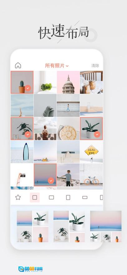 通过布局、磁贴、滤镜等元素重新组合照片,充满乐趣。拥有简单流畅的操作体验,无论是调整图片大小、修改布局或是反转照片都只需要简单的点击拖动即可完成。