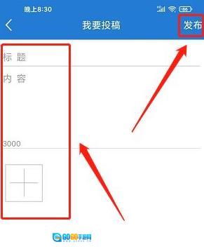 进入我要投稿界面,填写标题、稿件内容、上传图片,点击【发布】。
