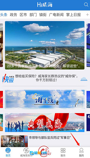 1、点击我的,进入Hi威海首页后,点击【我的】。