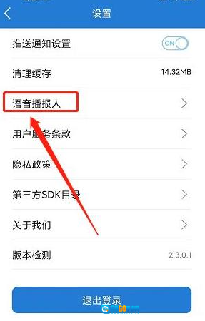 3、点击语音播报人,进入设置界面,点击【语音播报人】。