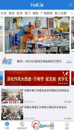 1、全面融合威海日报、威海晚报、威海新闻网等媒体资源,并整合各类政务资讯、便民资讯。